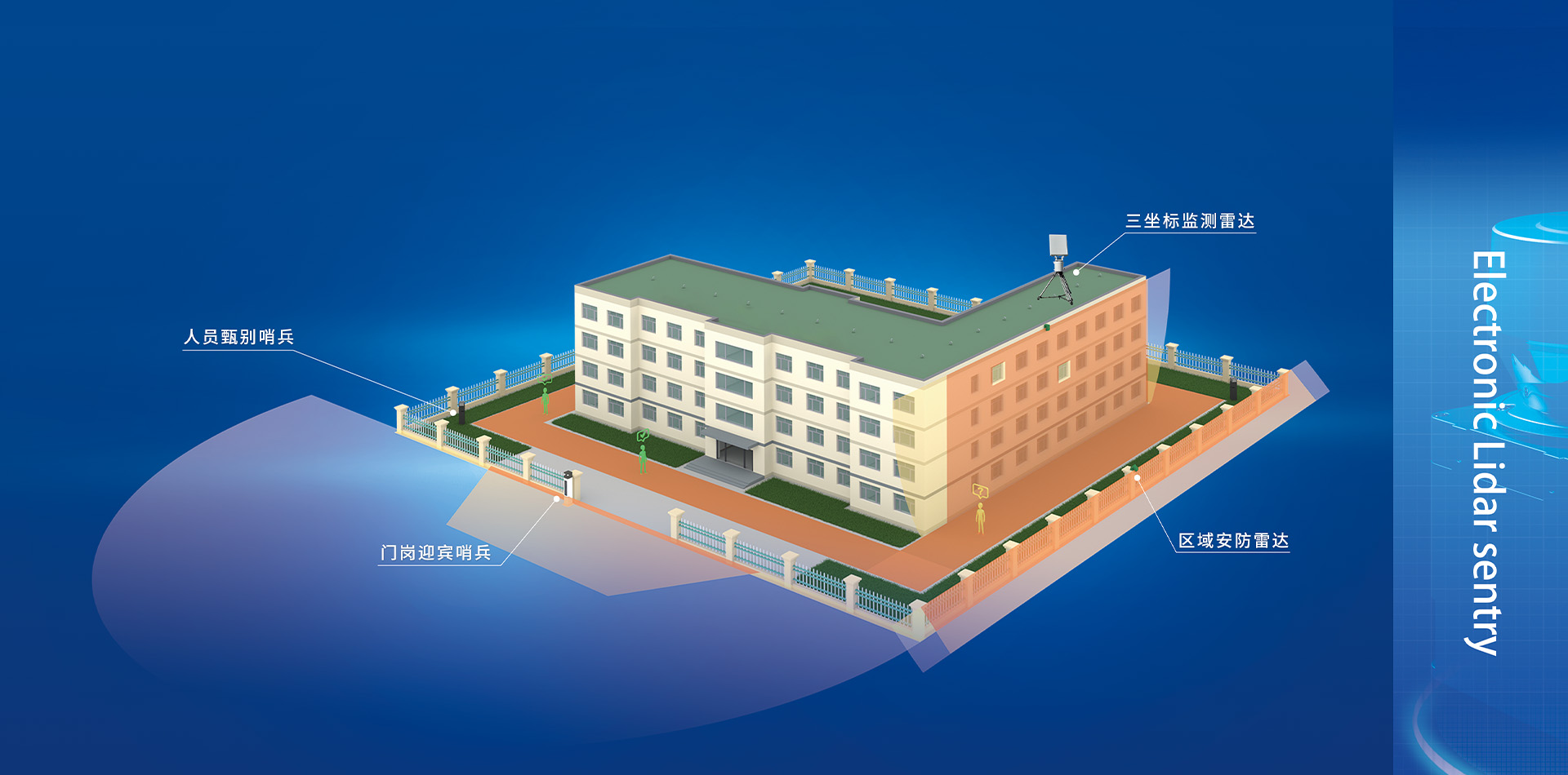 激光雷達(dá)哨兵是以天河電子激光雷達(dá)系列產(chǎn)品為核心器件,配套核心控制器、傳輸模塊、視頻模塊、身份認(rèn)證模塊、報(bào)警模塊等形成的一套便攜獨(dú)立式安全防護(hù)裝備。激光雷達(dá)哨兵基于激光掃描技術(shù),自動(dòng)掃描精確獲取入侵目標(biāo)實(shí)時(shí)坐標(biāo)位置,自動(dòng)記憶入侵目標(biāo)的運(yùn)動(dòng)軌跡;它形成了一堵無(wú)形的扇面激光墻,任意設(shè)置周界及內(nèi)部重點(diǎn)防護(hù)區(qū)域;結(jié)合應(yīng)用需求使用定制的特征識(shí)別算法,準(zhǔn)確判斷警情;支持多臺(tái)PTZ攝像機(jī)聯(lián)動(dòng),徹底解放人力,高效利用視頻資源;同時(shí),融合身份認(rèn)證模塊,區(qū)分合法人員與非法人員,增強(qiáng)警情取證的針對(duì)性以及警情處置的時(shí)效性。